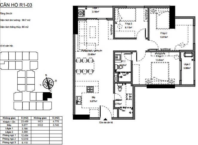 Căn hộ 3 phòng ngủ 85m2 dự án Florence Mỹ Đình